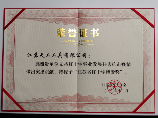 為了表彰今年以來在共同抗擊新冠疫情中作出重要貢獻(xiàn)的企業(yè),近日,江蘇省紅十字會授予江蘇天工工具有限公司江蘇省紅...